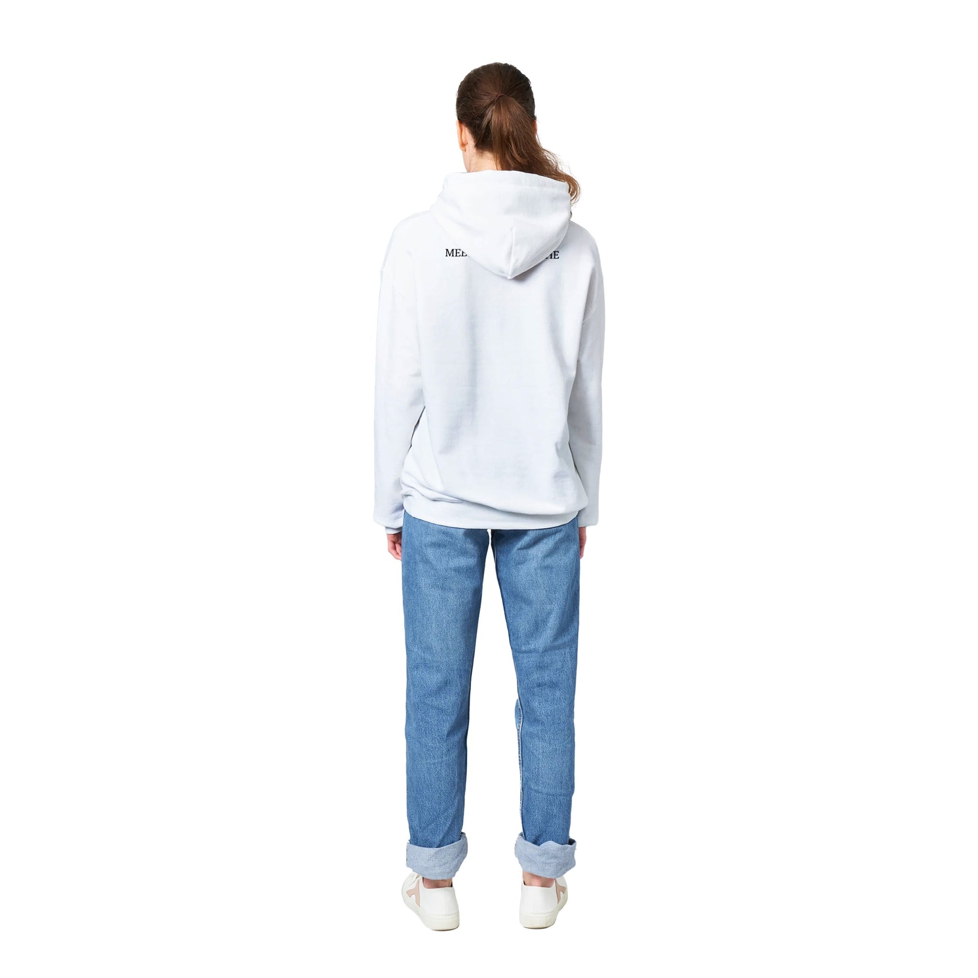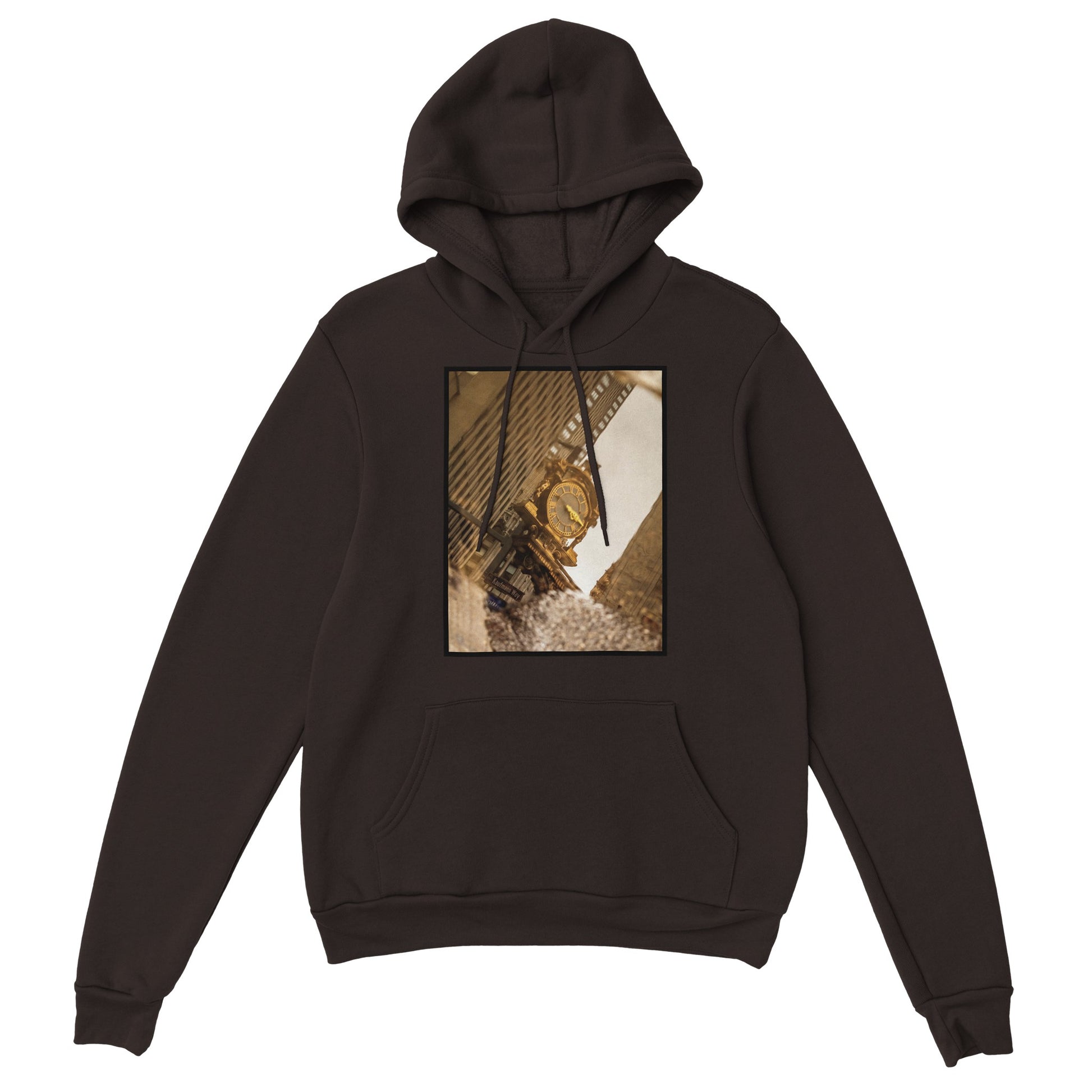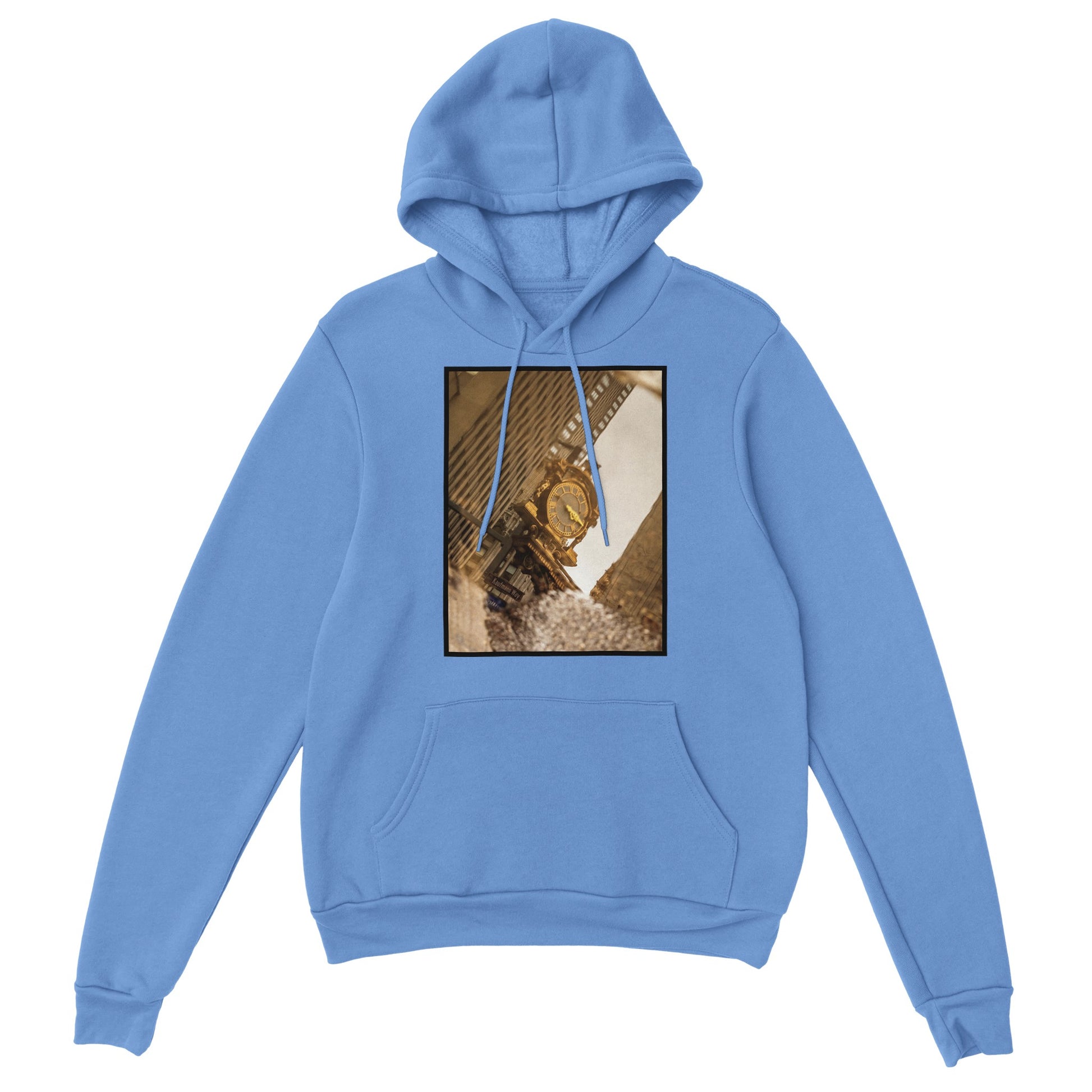 A classic hoodie with a large front pouch pocket and drawstrings in matching color.